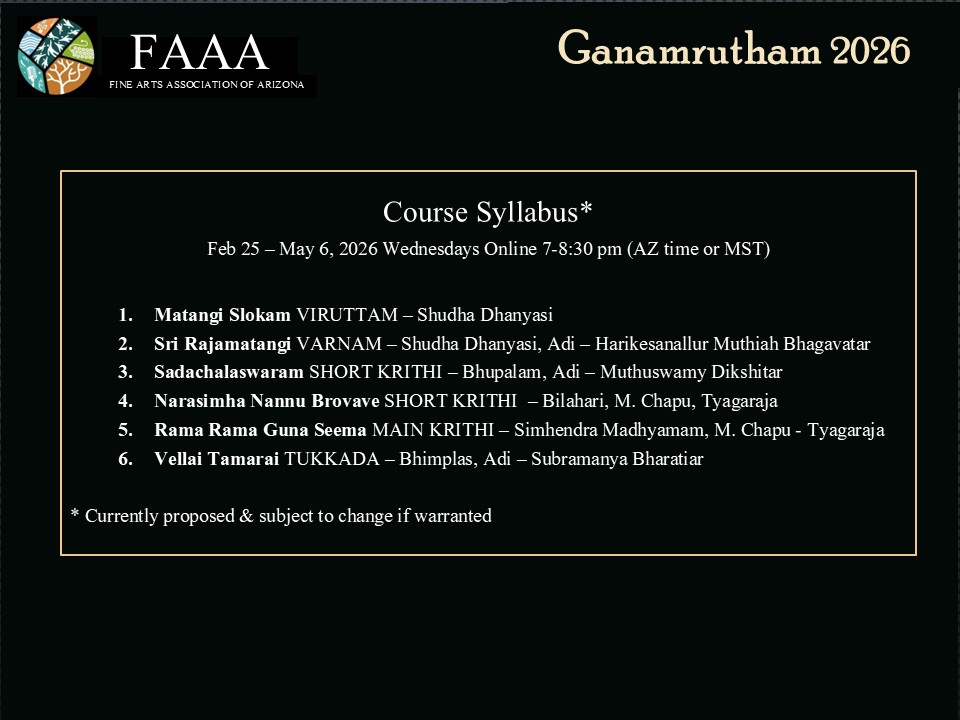 Fine Arts Association of Arizona is excited to bring a unique learning opportunity with Vidhwan Delhi P. Sunder Rajan.
