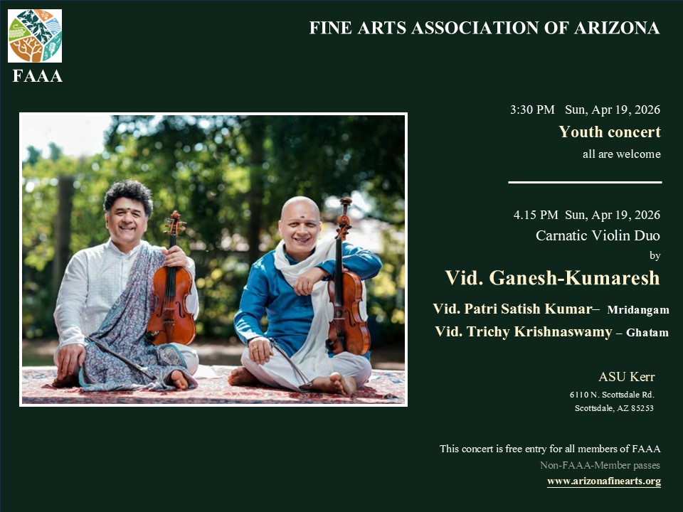 Fine Arts Association of Arizona proudly presents carnatic violin concert by Ganesh, Kumaresh and team.