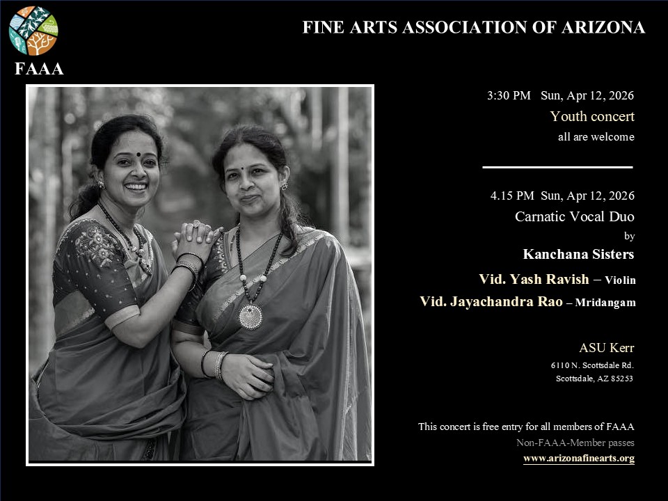 Fine Arts Association of Arizona proudly presents carnatic vocal concert by Kanchana Sisters and team.